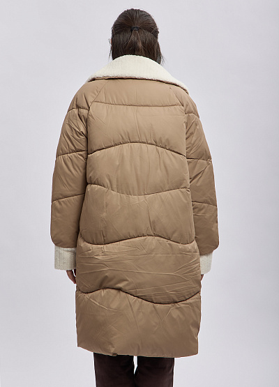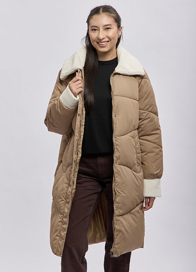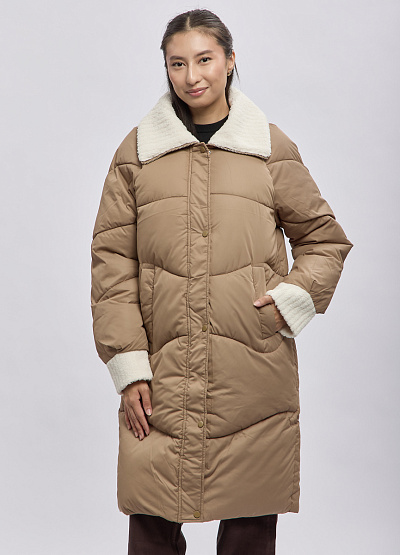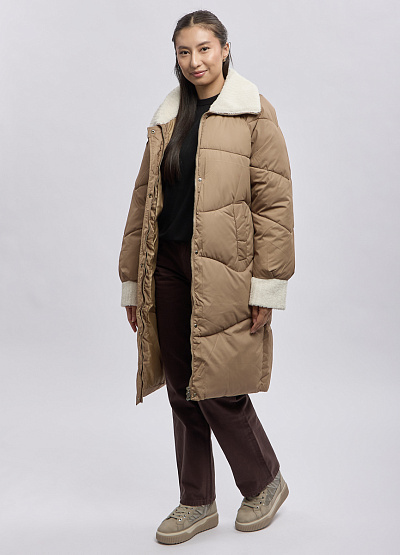 • Стильное и тёплое зимнее куртка Thomas Graf в мягком бежевом оттенке создано для максимального комфорта в холодный сезон. Модель выделяется уютным широким воротником из искусственного меха, который добавляет образу мягкости и служит дополнительной защитой от ветра. Объёмные манжеты с меховой отделкой усиливают ощущение уюта и тепла. Продуманная стёжка обеспечивает равномерное распределение утеплителя, а свободный крой позволяет легко сочетать пальто с зимними свитерами и повседневной одеждой.