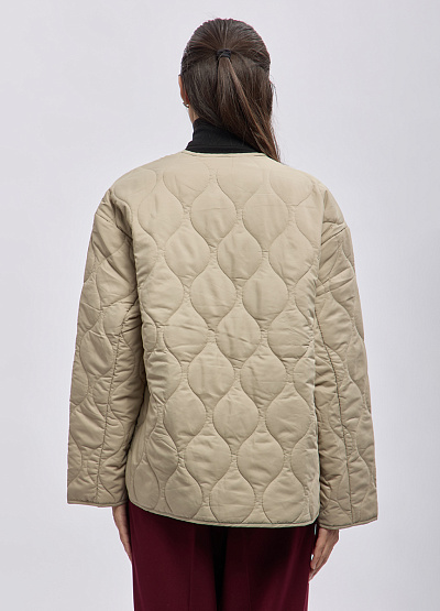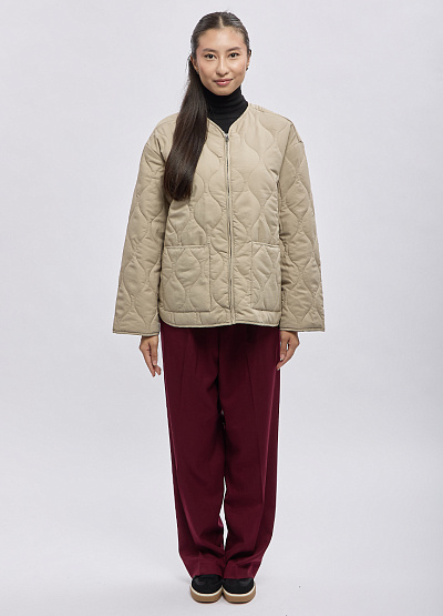• Стильная женская стёганая куртка Thomas Graf в современном минималистичном исполнении — лёгкая, удобная и универсальная для повседневной носки. Модель выполнена из мягкого материала с оригинальной волнообразной стёжкой, которая делает образ более выразительным и аккуратно формирует силуэт. Прямой свободный крой обеспечивает комфорт и свободу движений, а удобная молния и крупные накладные карманы добавляют функциональности. Куртка идеально подойдёт для межсезонья, легко сочетается как с джинсами, так и с более классическими образами.