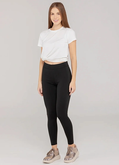 Классические чёрные леггинсы — незаменимая база для повседневного гардероба. Эластичный материал обеспечивает идеальную посадку и комфорт в течение дня.