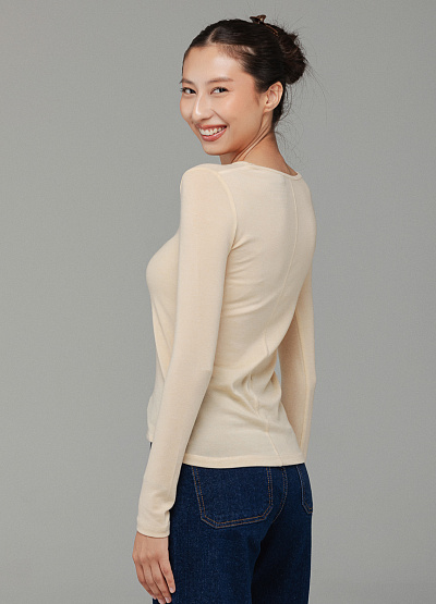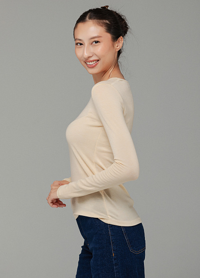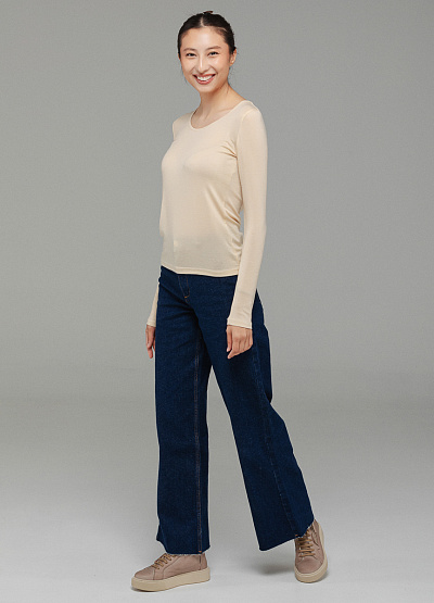 • Женский лонгслив песочного цвета от бренда Thomas Graf. Модель свободного кроя. Длинный рукав. Круглый образный вырез.
