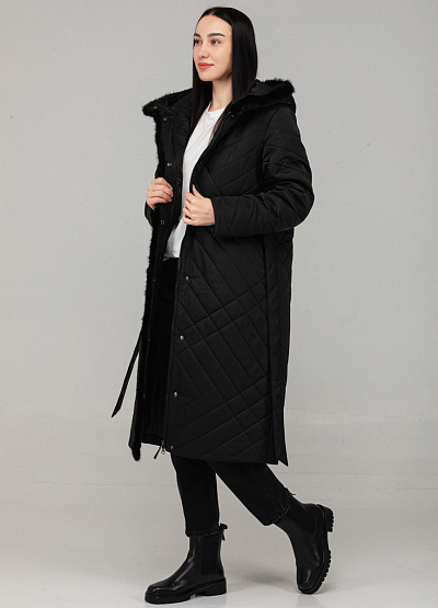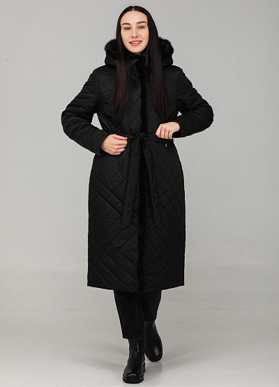 • Женское стеганное пальто от бренда Thomas Graf. Модель прямого кроя. Капюшон. Застежка на молнии и кнопки. Пояс в комплекте. Два боковых кармана.