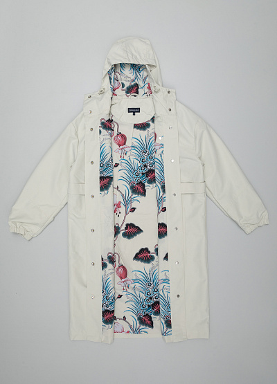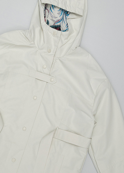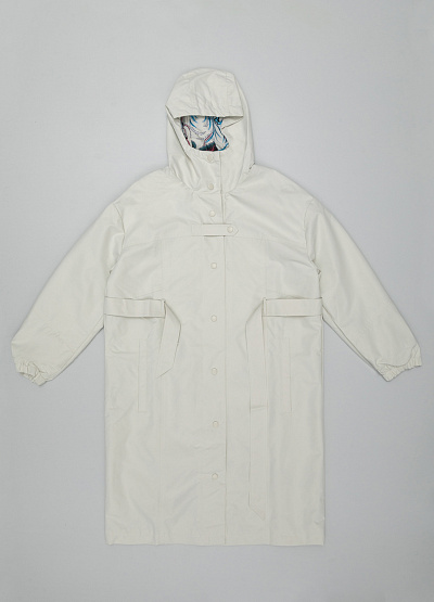 • Женский плащ от бренда Thomas Graf. Модель застегивается на клепки. Застежка-ремешок на уровне груди. Прямой крой. Капюшон. Два прорезных кармана по бокам. Принтованный подклад. Однотонный пояс в тон.