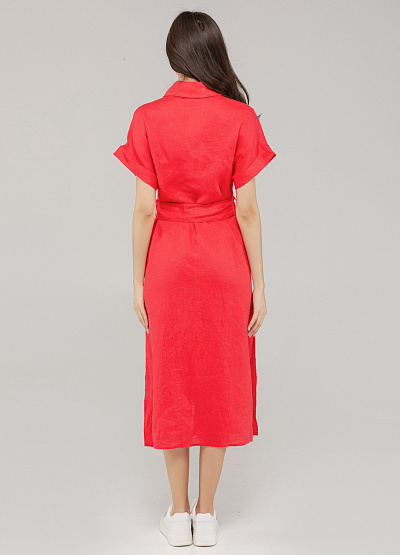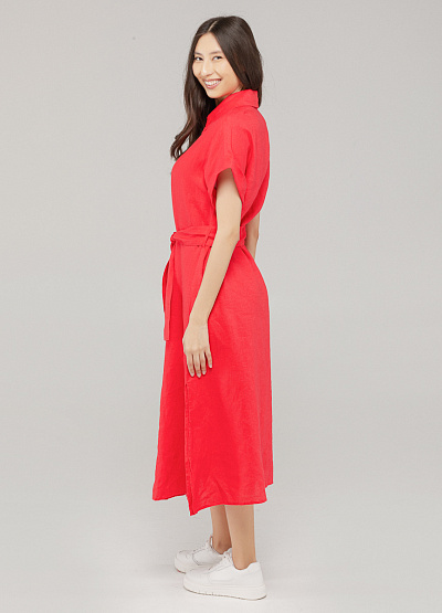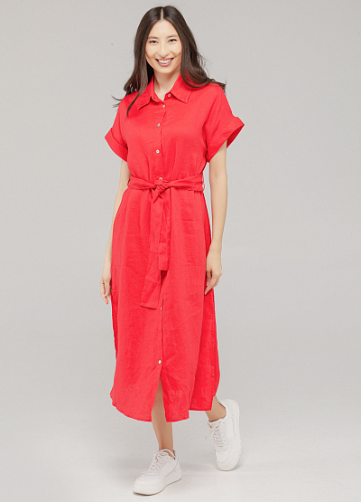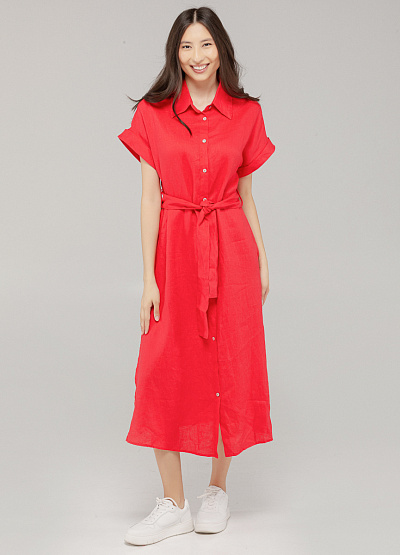 • Платье-рубашка — воплощение минималистичного летнего стиля. Выполнено из чистого льна, оно отлично дышит и дарит ощущение лёгкости в жаркие дни. Красный цвет делает образ ярким, но универсальным: подойдёт как для офиса, так и для прогулки по городу. Прямой силуэт с поясом подчёркивает фигуру, а аккуратный воротник добавляет изысканности. Это платье — база, которая легко впишется в любой гардероб.