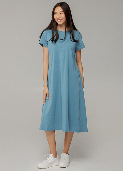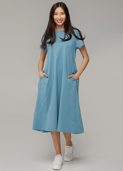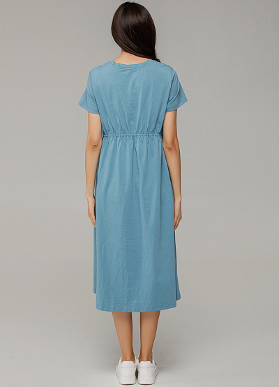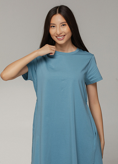 • Лаконичное голубое платье из мягкого хлопка — это воплощение универсальности и минимализма, которое подойдет как для прогулки по городу, так и для офиса в стиле кэжуал. Модель легко комбинируется с любыми аксессуарами и обувью, создавая элегантный образ без лишних деталей.