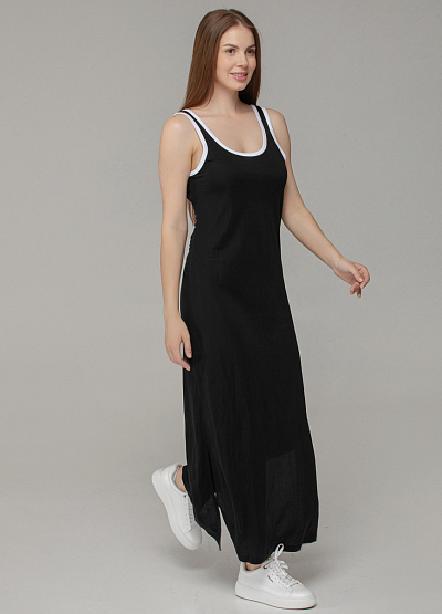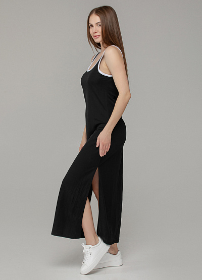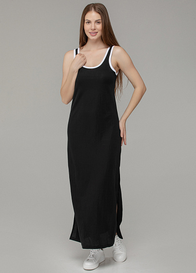 • Лаконичное черное платье в спортивном стиле — идеальный выбор для активных и стильных. Контрастная белая отделка на бретелях и вырезе добавляет динамики и подчеркивает свежесть образа. Мягкий материал и свободный крой обеспечивают комфорт в течение всего дня.
