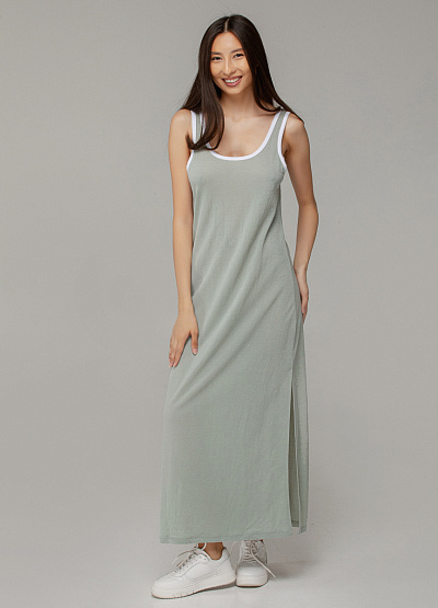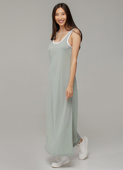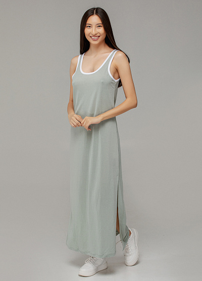 • Лаконичное серое платье в спортивном стиле — идеальный выбор для активных и стильных. Контрастная белая отделка на бретелях и вырезе добавляет динамики и подчеркивает свежесть образа. Мягкий материал и свободный крой обеспечивают комфорт в течение всего дня.