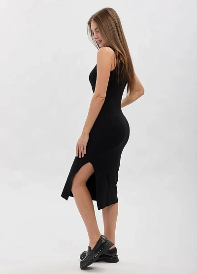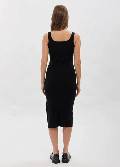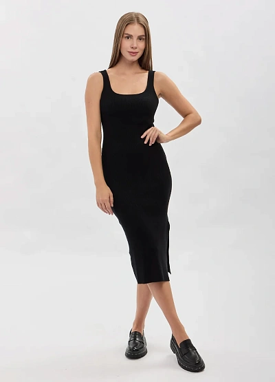 • Элегантное женское платье миди в лаконичном чёрном цвете — идеальный вариант для тех, кто ценит минимализм и универсальность. Модель выполнена из эластичного трикотажа в рубчик, который мягко облегает фигуру, подчёркивая силуэт и обеспечивая комфорт в течение всего дня. Прямой крой и аккуратные бретели делают платье базовым элементом гардероба, подходящим как для повседневных образов, так и для более собранных городских луков.