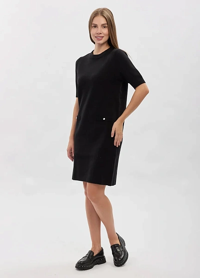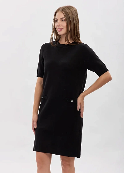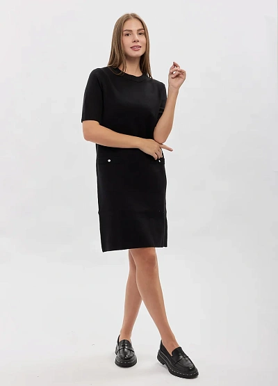 • Элегантное женское платье из мягкого трикотажа — универсальная модель для повседневных и более собранных образов. Прямой лаконичный силуэт подчёркивает фигуру, не сковывая движений, а минималистичный дизайн делает платье легко комбинируемым с обувью и аксессуарами. Короткий рукав и длина выше колена обеспечивают комфорт в течение всего дня, а декоративные элементы на карманах добавляют аккуратный акцент.