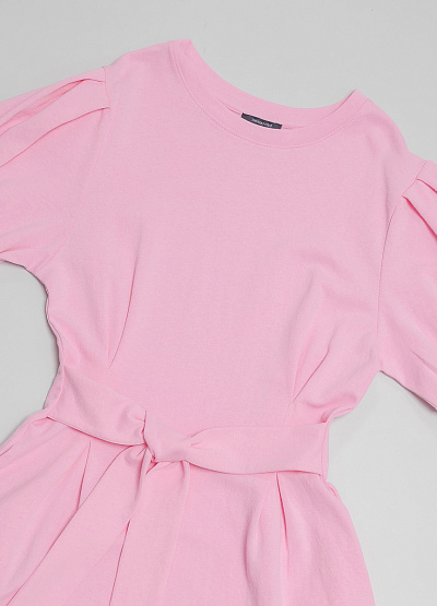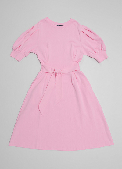 • Платье розового цвета от немецкого бренда Thomas Graf. Модель выполнена из хлопка. Приталенный крой с завязывающимся спереди поясом. Расклешенный низ. Круглый вырез. Рукава фонарики.