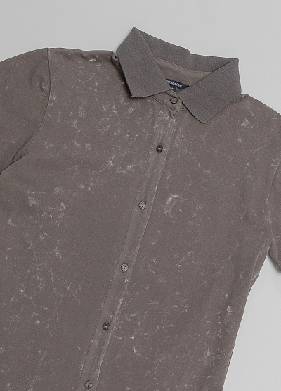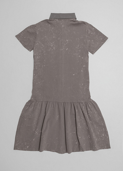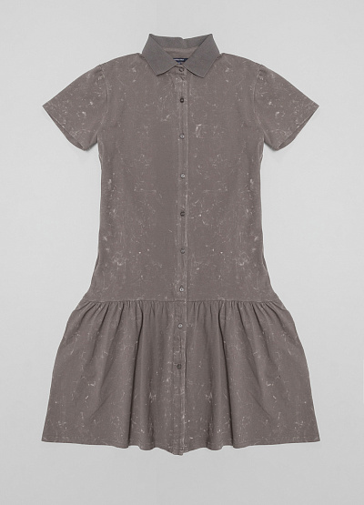 • Платье серого цвета с принтом от немецкого бренда Thomas Graf. Модель выполнена из хлопка. Свободный крой. Расклешенный низ со складками. Отложной воротник с застежкой на пуговицы по всей длине платья. Короткие рукава.
