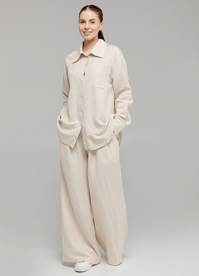 • Рубашка из натуральной ткани — базовый элемент гардероба с акцентом на комфорт.