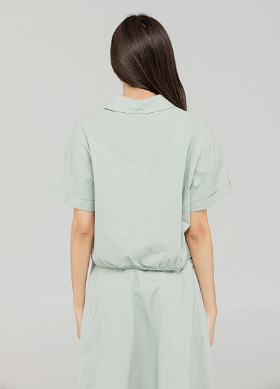 • Женская рубашка с коротким рукавом в нежном мятном оттенке — идеальное решение для летнего гардероба. Минималистичный крой и комфортный состав ткани делают её универсальной базой на каждый день.