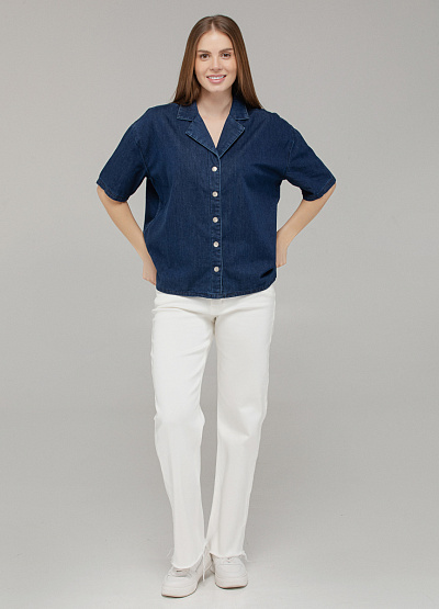 • Тёмно-синяя джинсовая рубашка — стильная классика вне времени