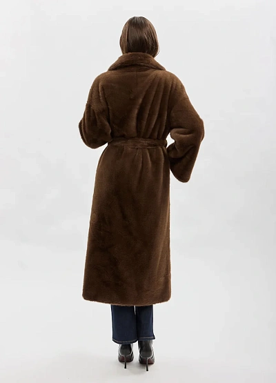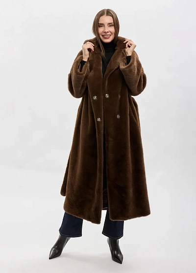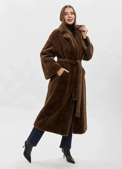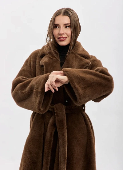 • Элегантная женская шуба из искусственного меха — выразительная модель для холодного сезона, сочетающая комфорт и утончённый стиль. Удлинённый силуэт визуально вытягивает фигуру, а пояс подчёркивает талию, создавая женственный силуэт. Мягкий мех с плотной текстурой дарит тепло и уют, а классический отложной воротник добавляет образу благородства. Модель легко вписывается как в повседневные, так и в более изысканные образы.