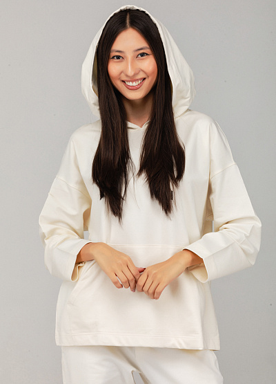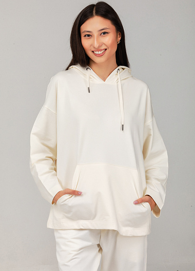 • Женское спортивное худи белого цвета от бренда Thomas Graf. Модель свободного кроя с объемным капюшоном и удобным карманом кенгуру. Оверсайз крой не сковывает движений. Изделие хорошо держит форму и одинаково стильно будет смотреться на разных типах фигуры. Минималистичный дизайн сделает эту базовую вещь самой любимой в вашем гардеробе и будет эффектно смотреться с любыми джинсами и штанами.