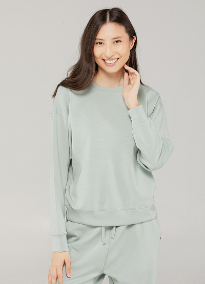 • Погрузитесь в мягкость и комфорт с этим женским свитшотом в нежном мятном оттенке. Модель выполнена из приятного к телу материала с легким стрейч-эффектом, который сохраняет форму и дарит свободу движений в течение всего дня. Классический круглый вырез, заниженная линия плеч и свободный крой создают расслабленный, но аккуратный силуэт. Минималистичный дизайн дополнен едва заметным металлическим логотипом внизу изделия — акцент на лаконичность и стиль.