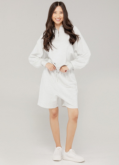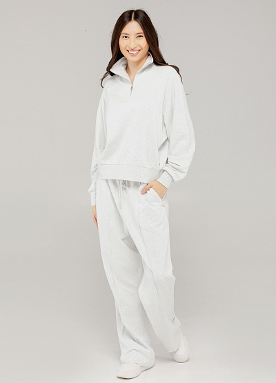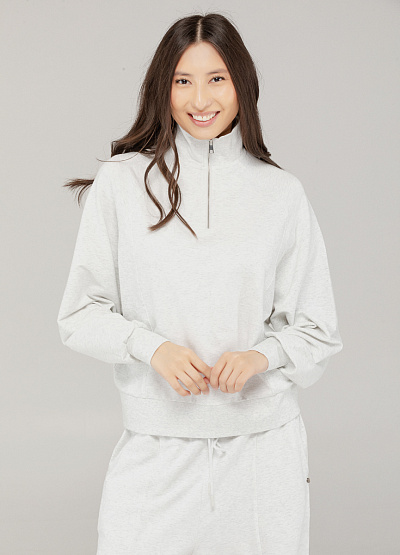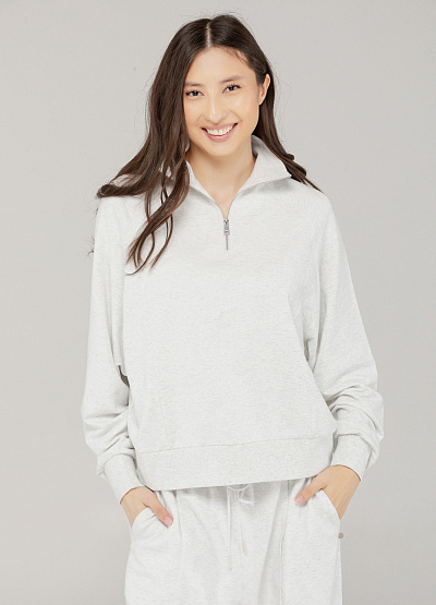 • Светло-серый свитшот с короткой молнией — базовая модель для тех, кто ценит комфорт и спокойную эстетику. Универсальный крой и мягкий хлопковый трикотаж делают этот свитшот идеальным решением для повседневных образов. Молния на воротнике позволяет регулировать посадку и добавляет функциональности.