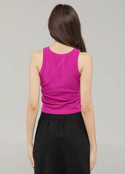 • Топ цвета фуксия — это эффектная и практичная вещь для вашего гардероба. Модель без рукавов выполнена из мягкого и тянущегося материала, который приятно прилегает к телу. Яркий цвет делает этот топ отличной основой как для повседневных, так и для активных, летних образов. Отлично комбинируется с джоггерами, юбками на запах или джинсовыми шортами.