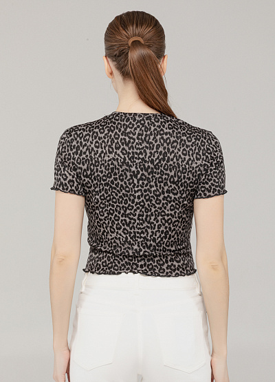 • Футболка — это смелое сочетание комфорта и стиля. Леопардовый принт придаёт характер даже самому простому образу, а облегающий фасон делает её отличной базой как для уличных, так и вечерних луков. Носи с денимом, юбкой или под пиджак — и в каждом варианте она будет работать на тебя.