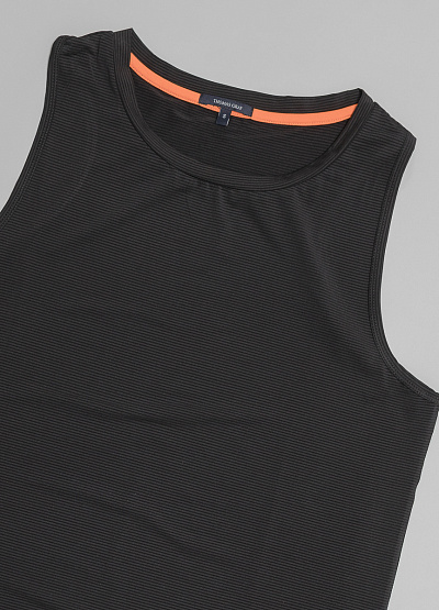 • Женский спортивный топ черного цвета от немецкого бренда Thomas Graf. Модель без рукавов. Круглый вырез с окантовкой.