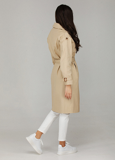• Женская тренч бежевого цвета от бренда Thomas Graf. Благодаря своей универсальности и практичности модель на пуговицах станет незаменимой вещью в гардеробе каждой женщины. Модель выполнена из высококачественного материала, что делает ее стильной и комфортной. Она идеально подходит для демисезонного периода, когда требуется легкая защита от ветра и непогоды.