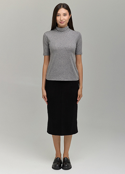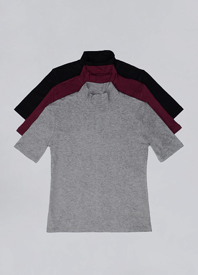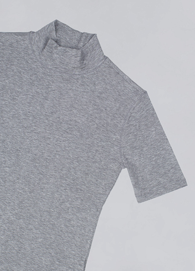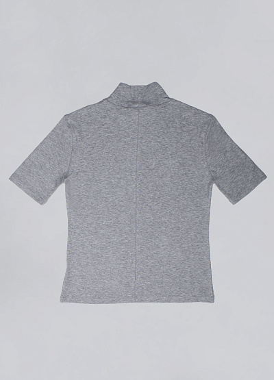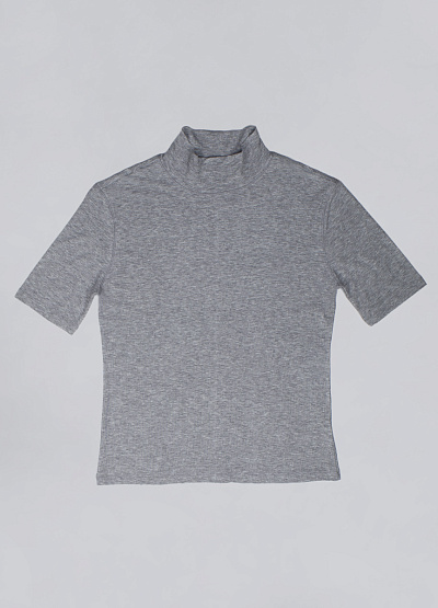 Светло-серый гольф с коротким рукавом и воротником-стойкой станет отличным дополнением к гардеробу. Его нейтральный оттенок легко комбинируется с яркими и спокойными тонами.