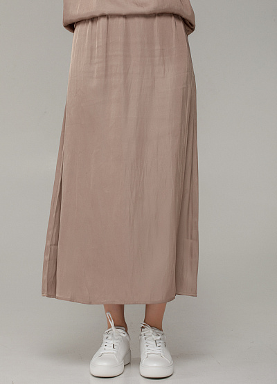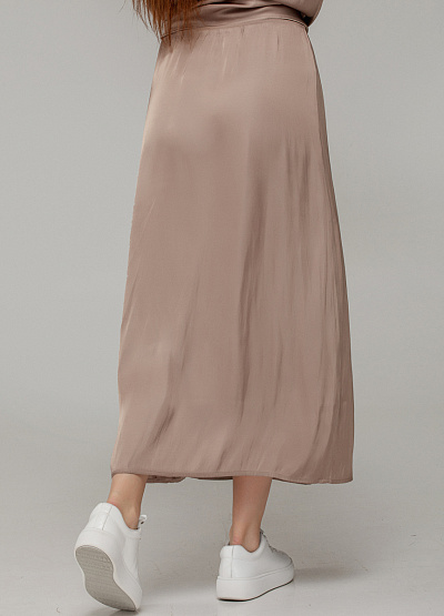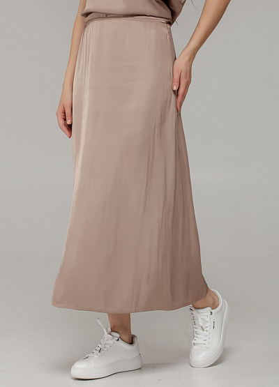 • Минималистичная бежевая юбка миди — базовая вещь, которая сочетается с любым гардеробом. Выполнена из лёгкой струящейся ткани, она красиво драпируется и создаёт изящный силуэт. Эластичный пояс обеспечивает комфортную посадку на талии.