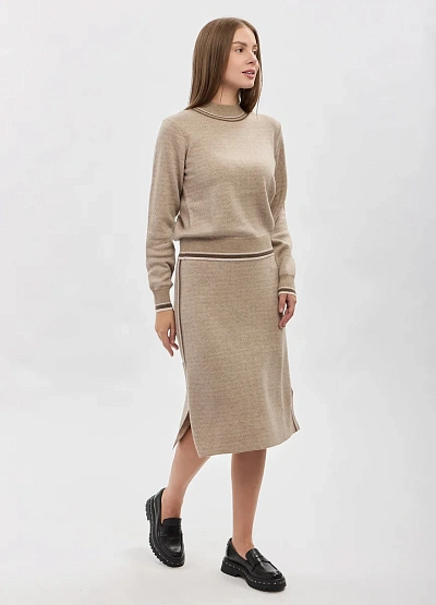 • Женская трикотажная юбка миди с выразительным леопардовым принтом — эффектная модель для стильных повседневных и городских образов. Прямой крой подчёркивает силуэт, а эластичный пояс обеспечивает комфортную посадку по талии. Контрастная боковая вставка с декоративной отделкой добавляет динамики и визуально вытягивает силуэт. Юбка гармонично сочетается с джемпером из комплекта Natali, создавая завершённый и модный образ.