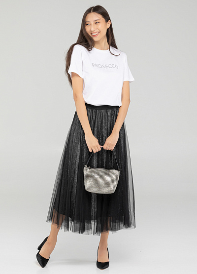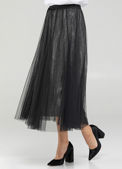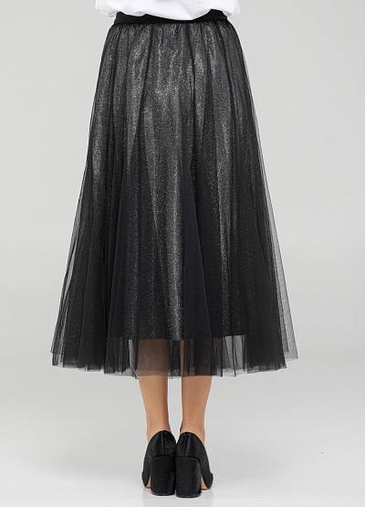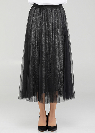 •         Женская юбка черного цвета от бренда Loretta Very. Модель расклешенного кроя сочетает в себе комфорт и стиль, элегантность и непринужденность. С ней можно создавать множество различных образов - от повседневного до вечернего. Просто добавьте соответствующие аксессуары и обувь, и вы будете выглядеть шикарно в любой ситуации.