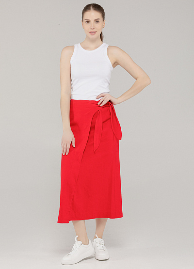 • Льняная юбка с запахом в коралловом цвете — это идеальный выбор для тёплого сезона. Простая, но стильная модель завязывается на талии, обеспечивая комфортную посадку и возможность регулировки. Универсальная длина миди делает её подходящей как для городского лука, так и для отдыха. Сочетается с топами, майками, рубашками и кедами или сандалиями. Отличный вариант для базового летнего гардероба в духе эко и минимализма.