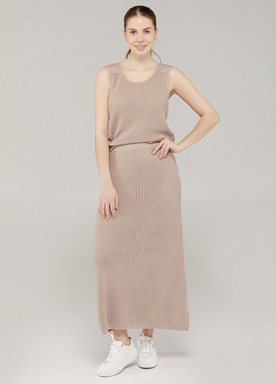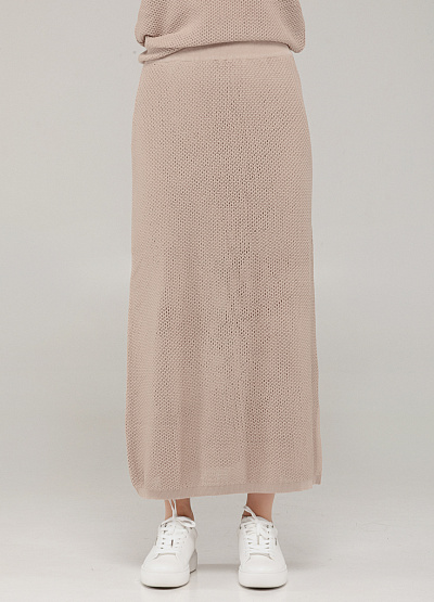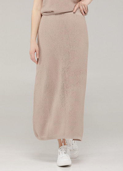 • Лаконичная трикотажная юбка длины миди выполнена в благородном бежевом оттенке и станет идеальной основой для повседневных образов. Эластичный пояс обеспечивает комфортную посадку, а фактурная вязка добавляет глубины и стиля. Отлично сочетается с топом из комплекта или любой однотонной блузой.