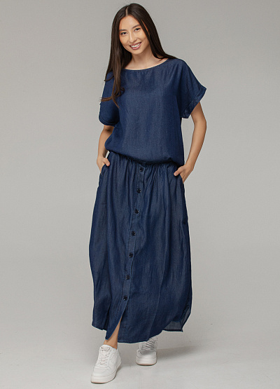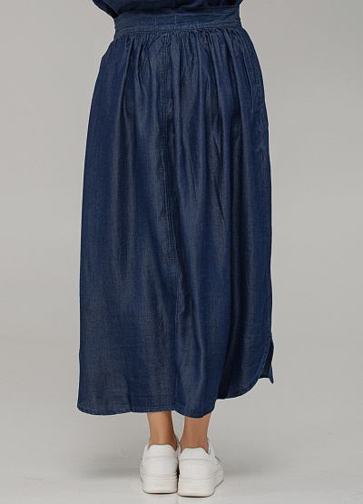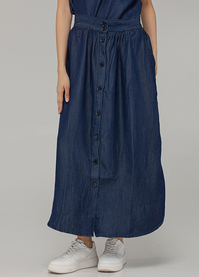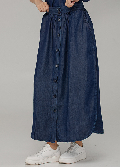• Джинсовая юбка миди на пуговицах — базовая модель с ноткой ретро-шика. Выполнена из мягкого и лёгкого денима, она комфортна в носке и отлично держит форму. Свободный силуэт, собранная линия талии и декоративная застёжка спереди делают модель универсальной для повседневных образов.