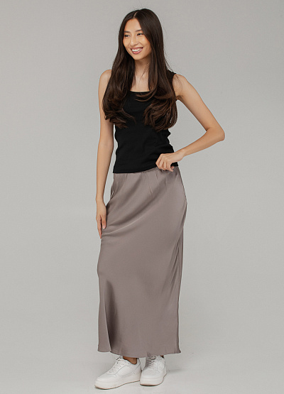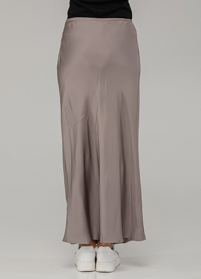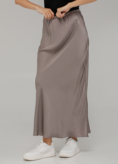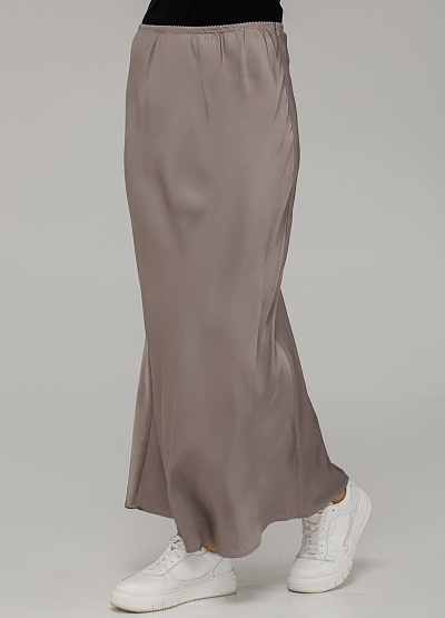 • Эта шелковистая юбка макси в изысканном серо-бежевом оттенке — воплощение элегантности в повседневной интерпретации. Гладкая фактура и мягкое мерцание ткани создают утончённый образ, а свободный силуэт на резинке дарит комфорт на весь день.