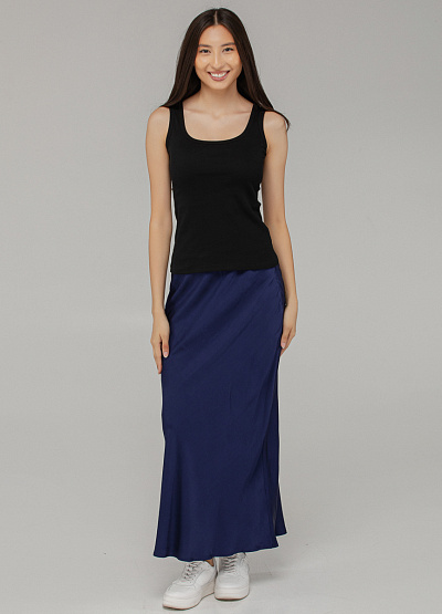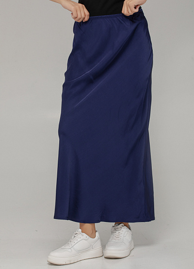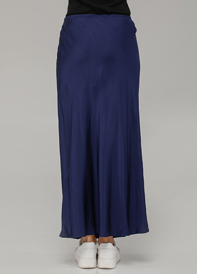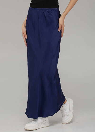 • Эта шелковистая юбка макси в изысканном синем оттенке — воплощение элегантности в повседневной интерпретации. Гладкая фактура и мягкое мерцание ткани создают утончённый образ, а свободный силуэт на резинке дарит комфорт на весь день.