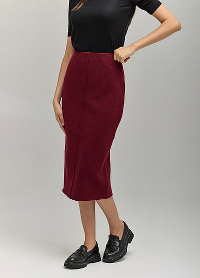 Прямая бордовая юбка подчеркнёт женственность и создаст яркий акцент в образе. Трикотаж обеспечивает удобство, а минималистичный крой делает модель универсальной.