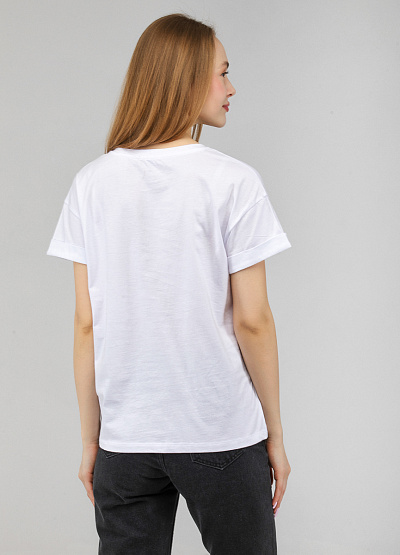 • Женская футболка от бренда Thomas Graf. Лицевая сторона декорирована крупным принтом. Короткие рукава. Круглый вырез.