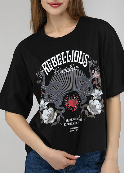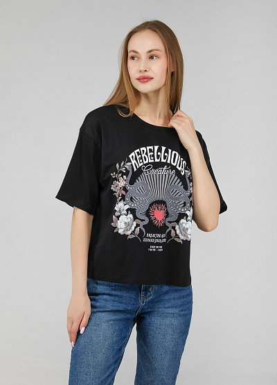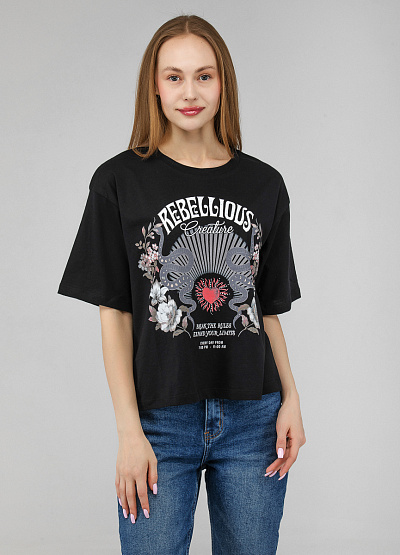 • Женская футболка из хлопка от бренда Thomas Graf. Лицевая сторона декорирована крупным принтом. Короткие рукава. Круглый вырез.