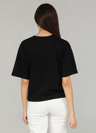 • Женская футболка черного цвета от бренда Thomas Graf. Эта модель поможет создать множество интересных и стильных образов. Она отлично сочетается с различными типами одежды – от юбок и брюк до шорт и джинс. Яркий принт на футболке украсит образ.