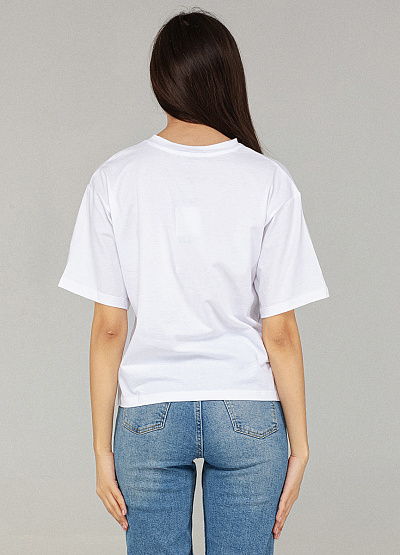 • Женская футболка белого цвета от бренда Thomas Graf. Эта модель поможет создать множество интересных и стильных образов. Она отлично сочетается с различными типами одежды – от юбок и брюк до шорт и джинс. Принт украсит образ.