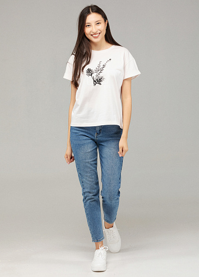 • Женская футболка белого цвета от бренда Thomas Graf. Эта модель поможет создать множество интересных и стильных образов. Она отлично сочетается с различными типами одежды – от юбок и брюк до шорт и джинс. Принт украсит образ.