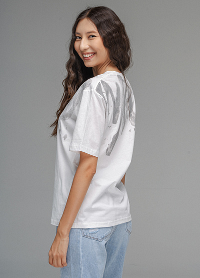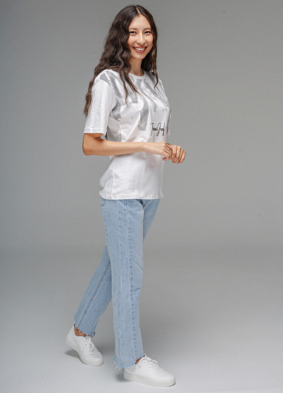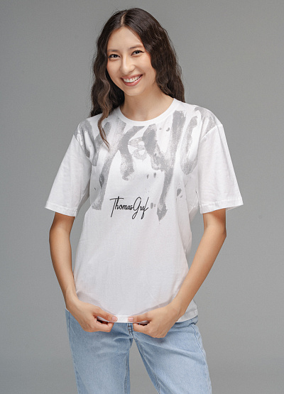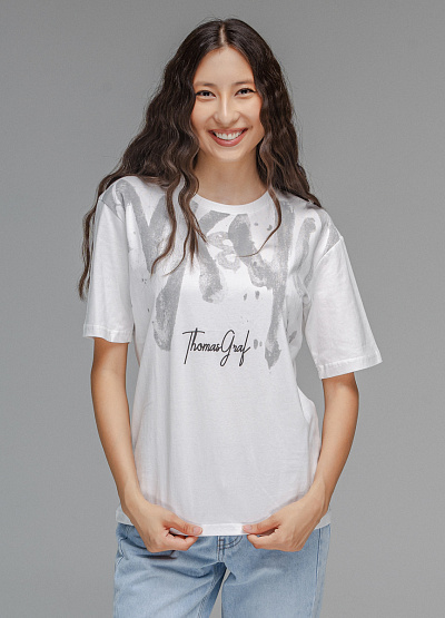 • Женская футболка белого цвета от бренда Thomas Graf. Эта модель поможет создать множество интересных и стильных образов. Она отлично сочетается с различными типами одежды – от юбок и брюк до шорт и джинс. Принт украсит образ.