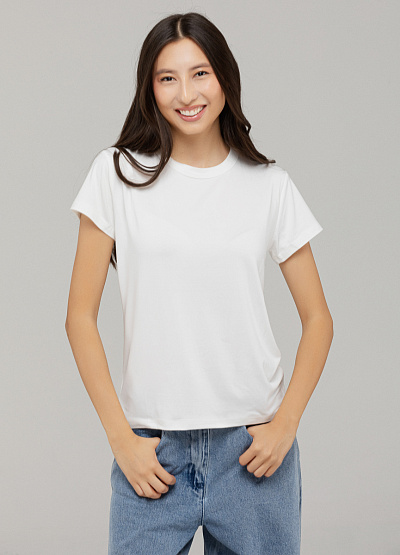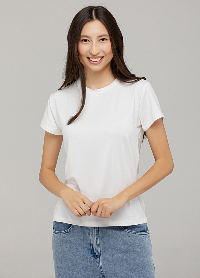 • Женская футболка белого цвета от бренда Thomas Graf. Модель свободного кроя выполнена из полиэстра. Короткие рукава. Круглый вырез.