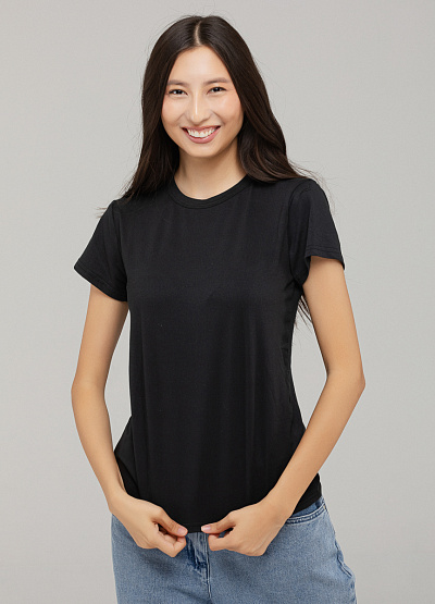 • Женская футболка черного цвета от бренда Thomas Graf. Модель свободного кроя выполнена из полиэстра. Короткие рукава. Круглый вырез.