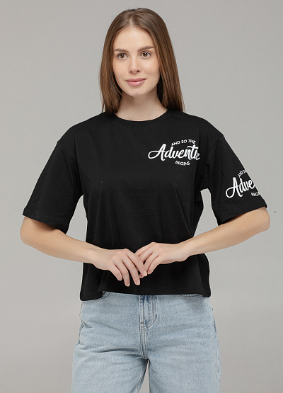 • Чёрная футболка с принтом "Adventure" — для тех, кто всегда в движении