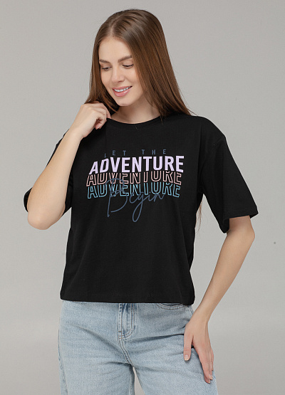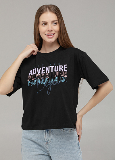 • Белая футболка "Let the adventure begin" — яркий акцент для стильных будней