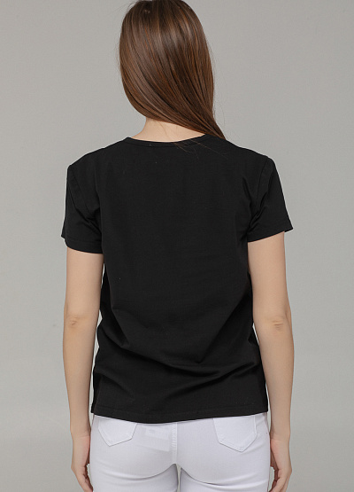 • Базовая чёрная футболка — универсальный элемент гардероба, который легко вписывается в любой образ. Сдержанный дизайн и комфортная посадка делают её идеальным решением на каждый день.