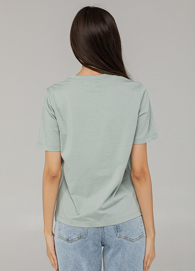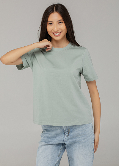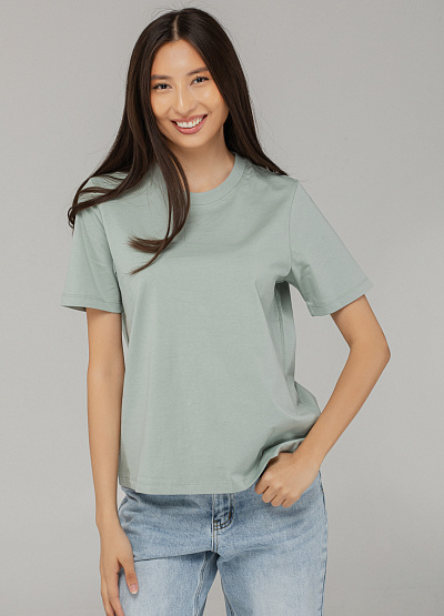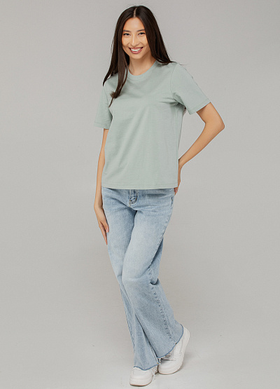 • Женская футболка в освежающем мятном оттенке — это стильная альтернатива базовой белой модели. Она добавит мягкий акцент в любой повседневный образ и подарит комфорт в течение всего дня.