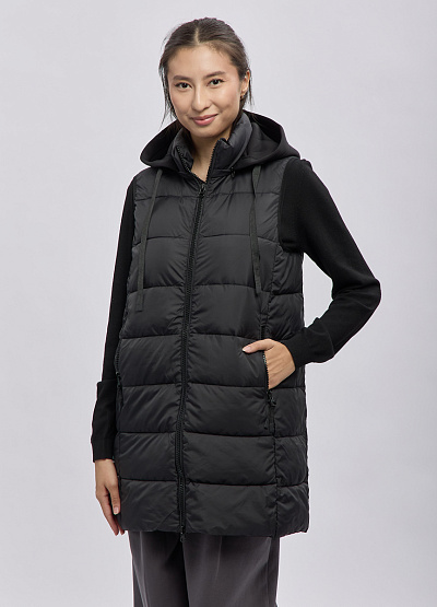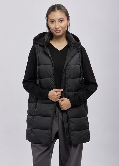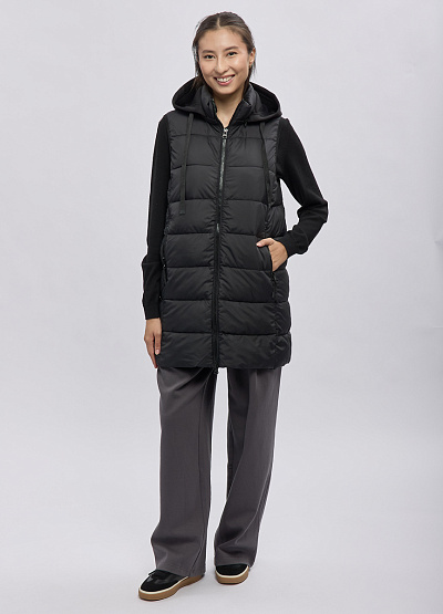 • Стильный удлинённый женскый стёганый жилет Thomas Graf в универсальном чёрном цвете — практичное решение для прохладной погоды. Лёгкая, но тёплая, она обеспечивает комфорт и свободу движений, а продуманная стёжка создаёт аккуратный силуэт. Модель оснащена удобным капюшоном с регулировкой, что позволяет защититься от ветра, и двусторонней молнией для удобства в активных ситуациях. Жилетка отлично сочетается с худи, свитерами, водолазками и подходит для повседневных образов.