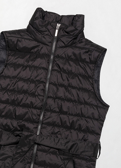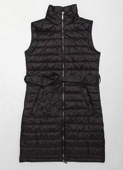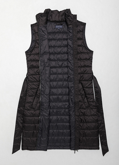 • Женский стеганый жилет от бренда Thomas Graf. Удлиненная модель. Застежка-молния по центру. Прорезные карманы. Воротник-стойка. Пояс в тон.