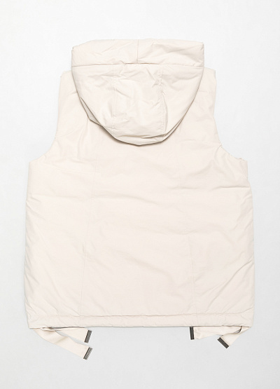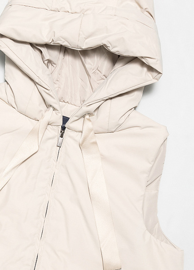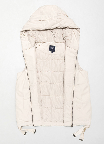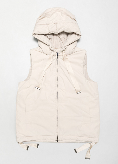 • Женский жилет от бренда Thomas Graf. Модель прямого кроя. Застежка-молния по центру. Два прорезных кармана по бокам. Капюшон на широкой ленте. Низ оформлен лентой для регулировки.